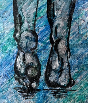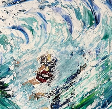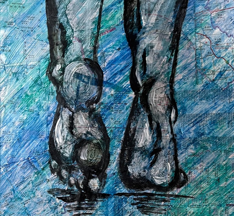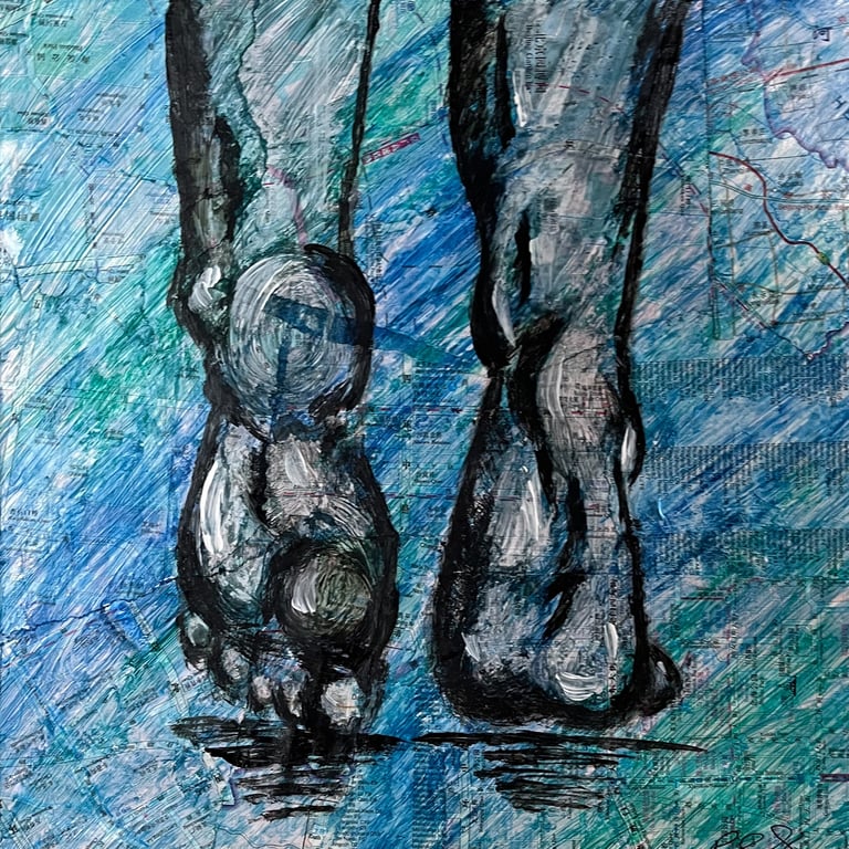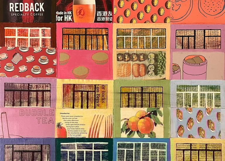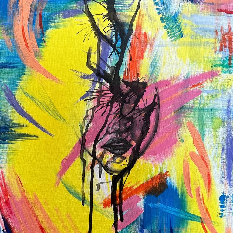 is a visual artist, working across a variety of mediums including collage, acrylic and oil paints.