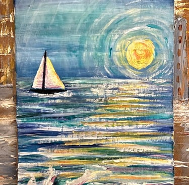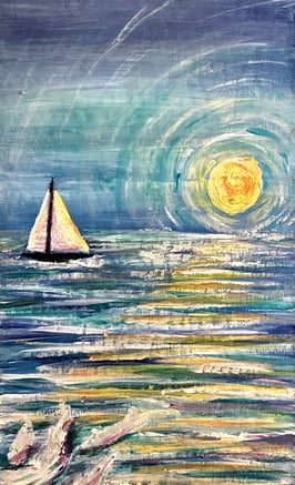 I've also been thinking about water a lot, and it's come through in some of my painting: blues and turquoise, grey ocean horizons, sail boats, glassy reflections and turbulent seas. I'm thinking about extending the HOME IS WHERE series to include some of these works.